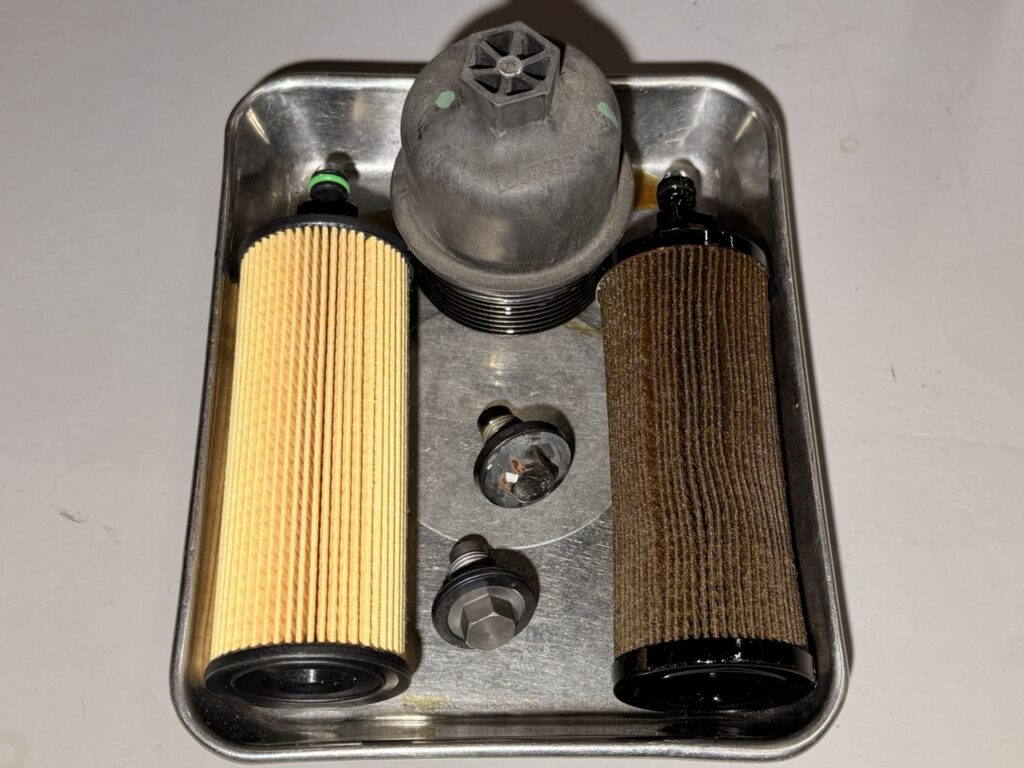 特にオイル漏れなどはないため、エンジンオイル・オイルフィルターの交換をお見積りいたします。