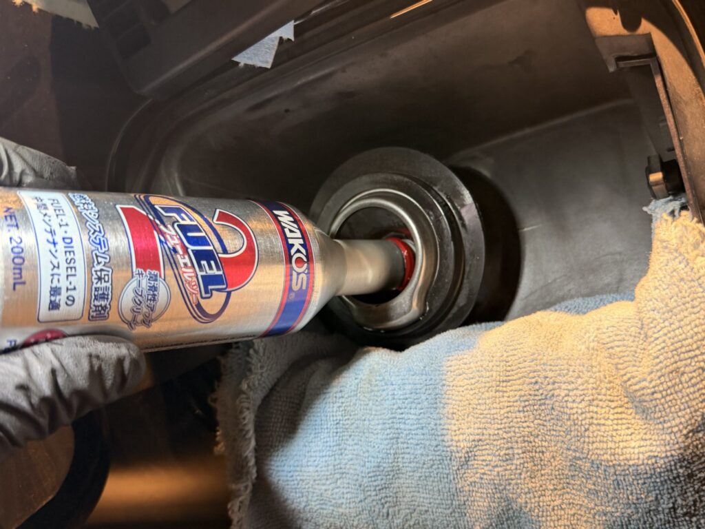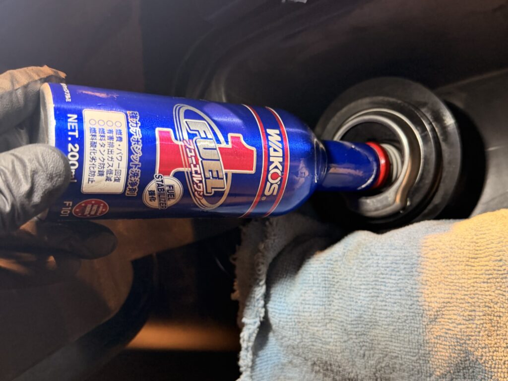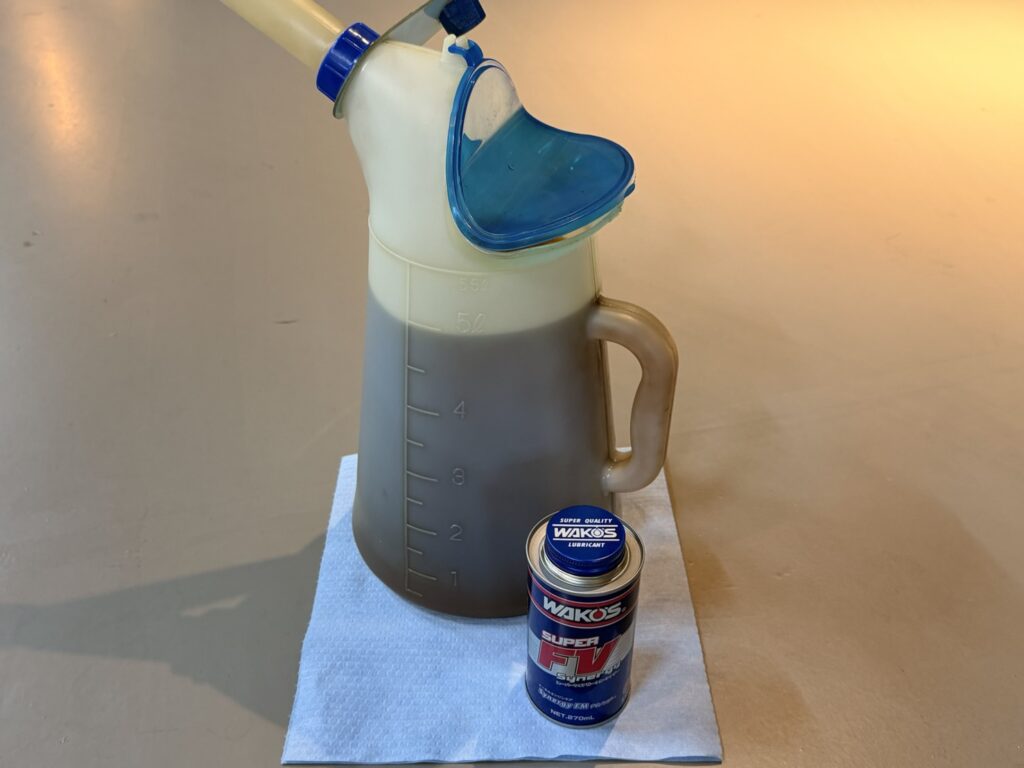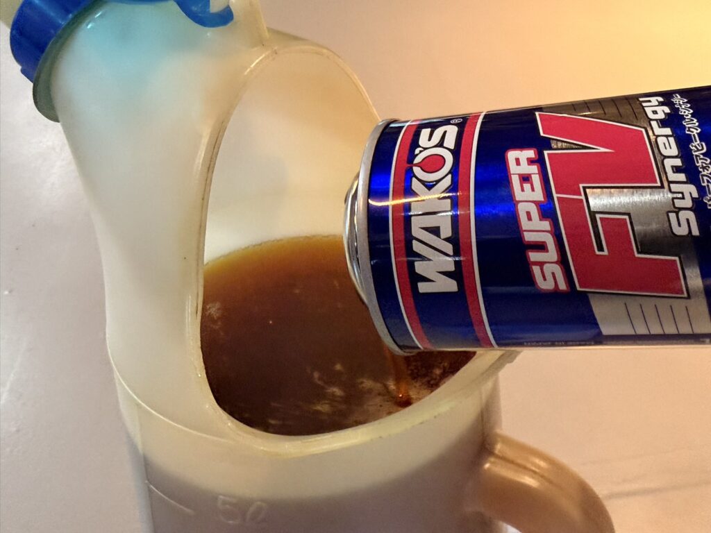 今回エンジオイル交換と同時にWAKO’Sのスーパーフォアビークル・シナジー(S-FV・S)も添加。