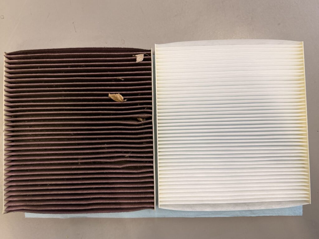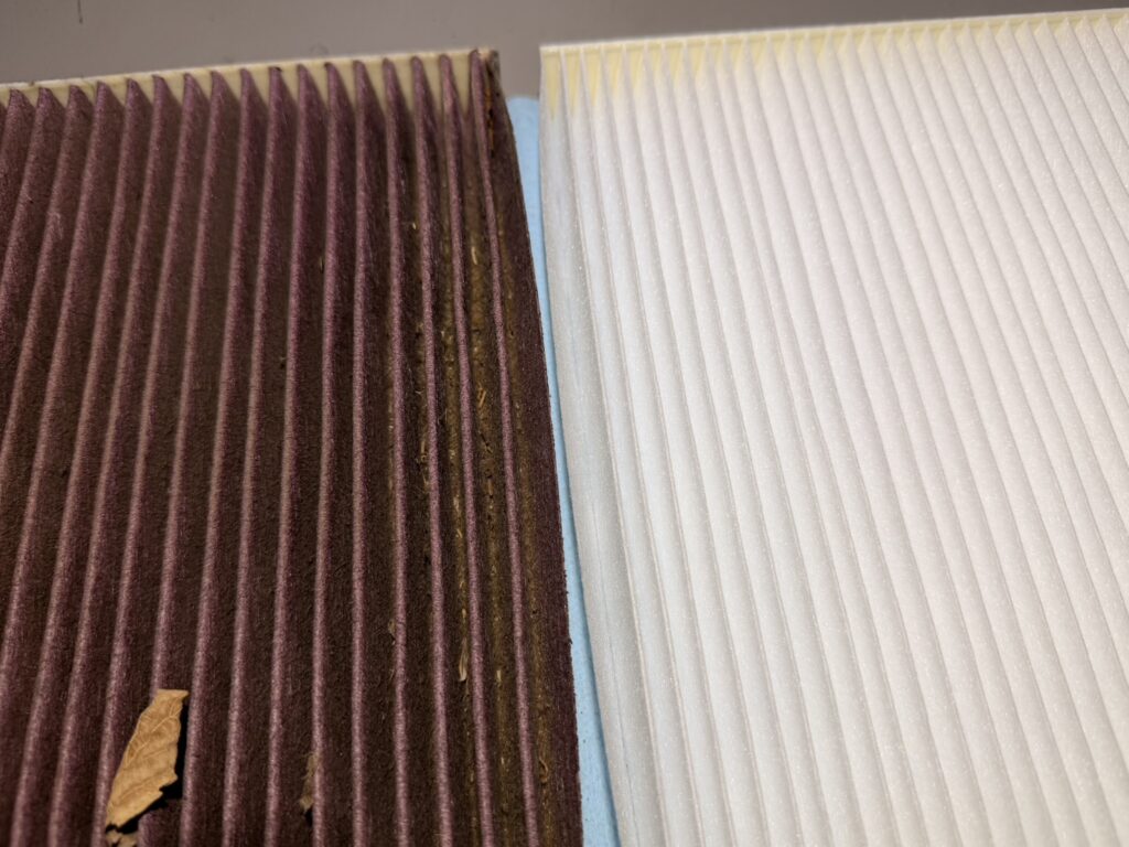 エアコンフィルターは、車外から取り込まれる空気や車内の空気をろ過して花粉やホコリ、ごみの集塵や活性炭などが含まれたフィルターで排気ガス臭・タバコ臭・ペットの臭いを吸収します。
