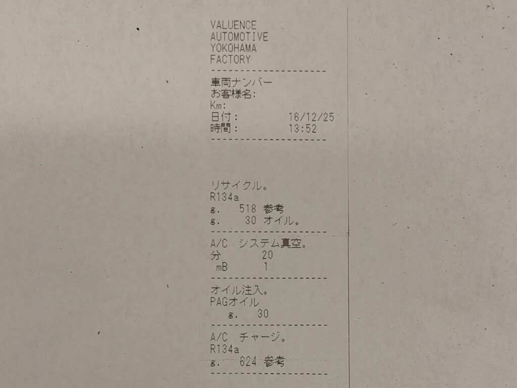 エアコンガス基準量624gに対し518g回収、106g減っていました。