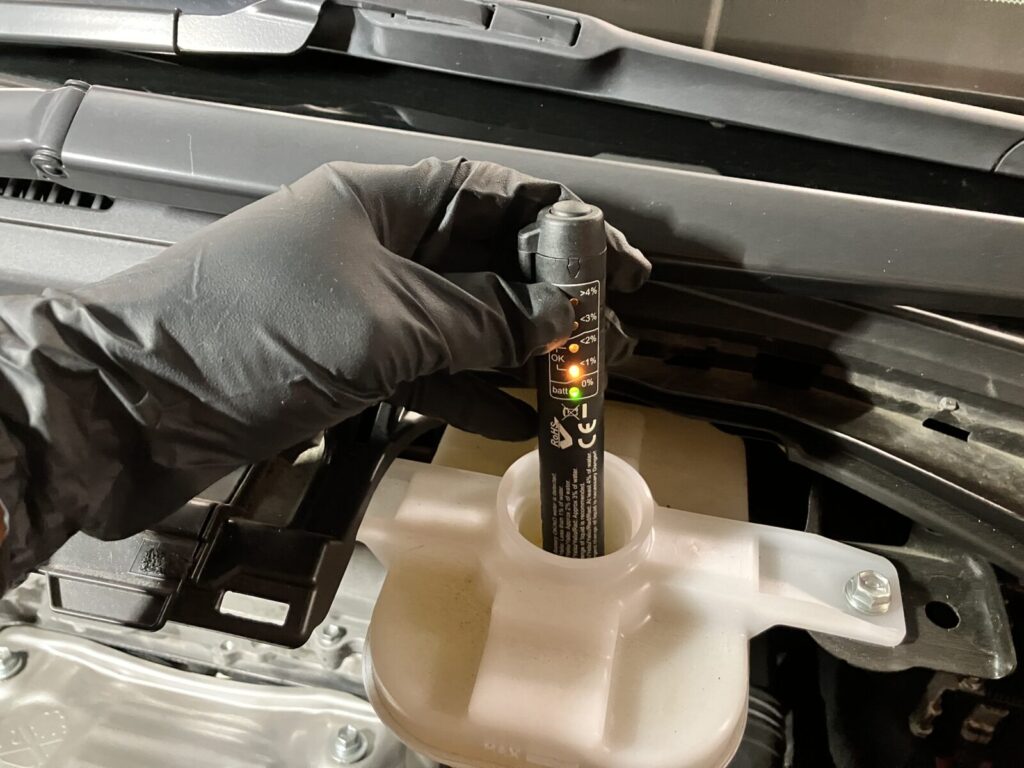 ブレーキフルードの確認は専用のテスターを使用しチェックします。