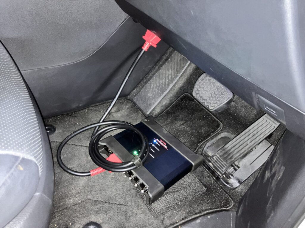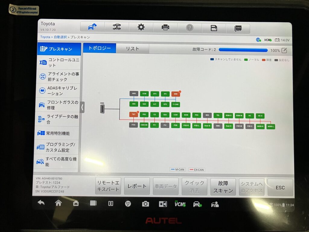 最後に診断機を接続し車両のユニット等にエラーがないか確認します。