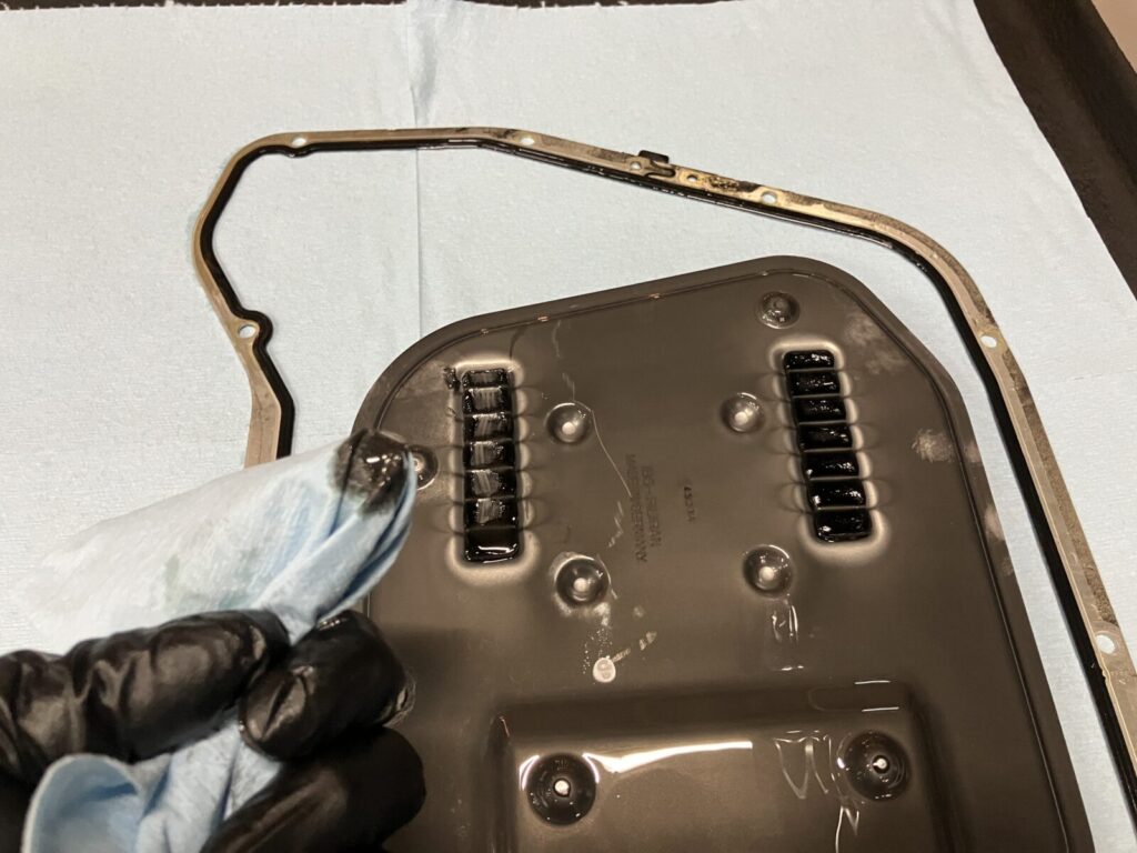 ATオイルパンの脱着清掃、及びストレーナー交換作業を進めます。
