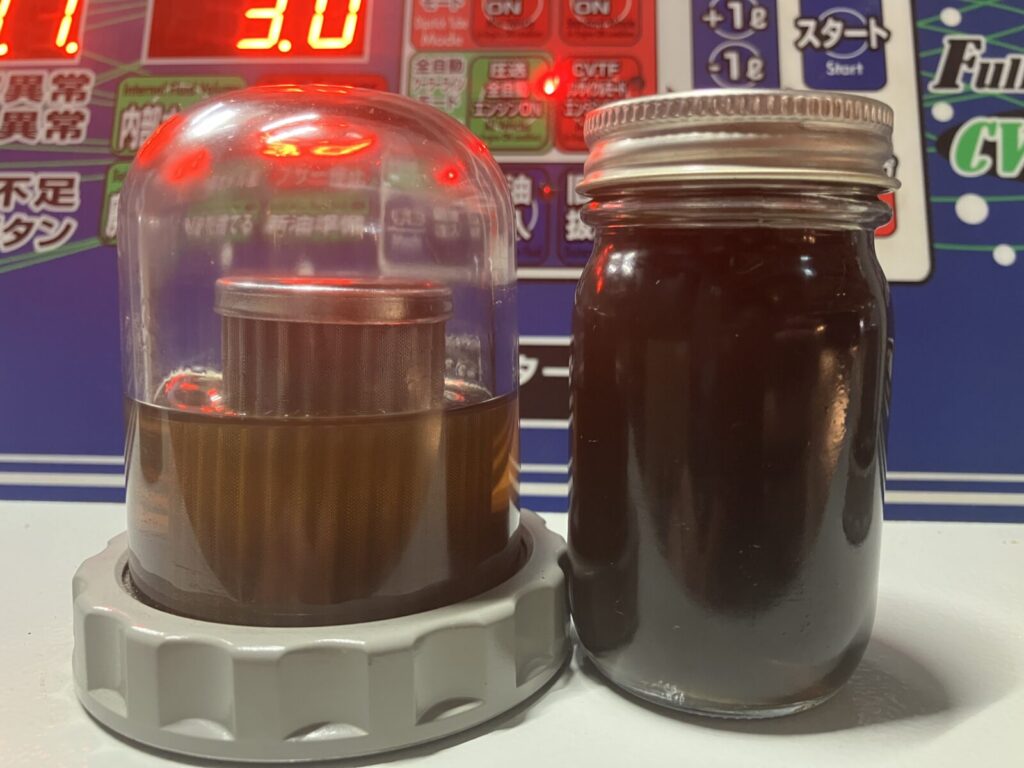 この時点でクリーナーモニターのATFと採取したサンプルのATFの透明度に明らかな違いが見受けられます。