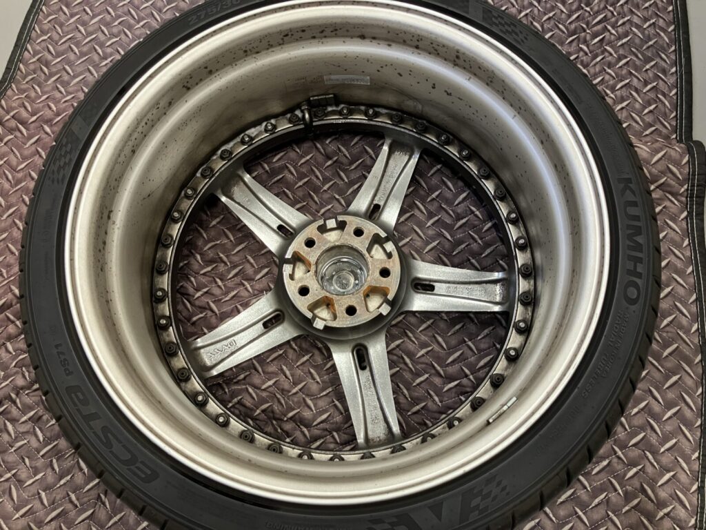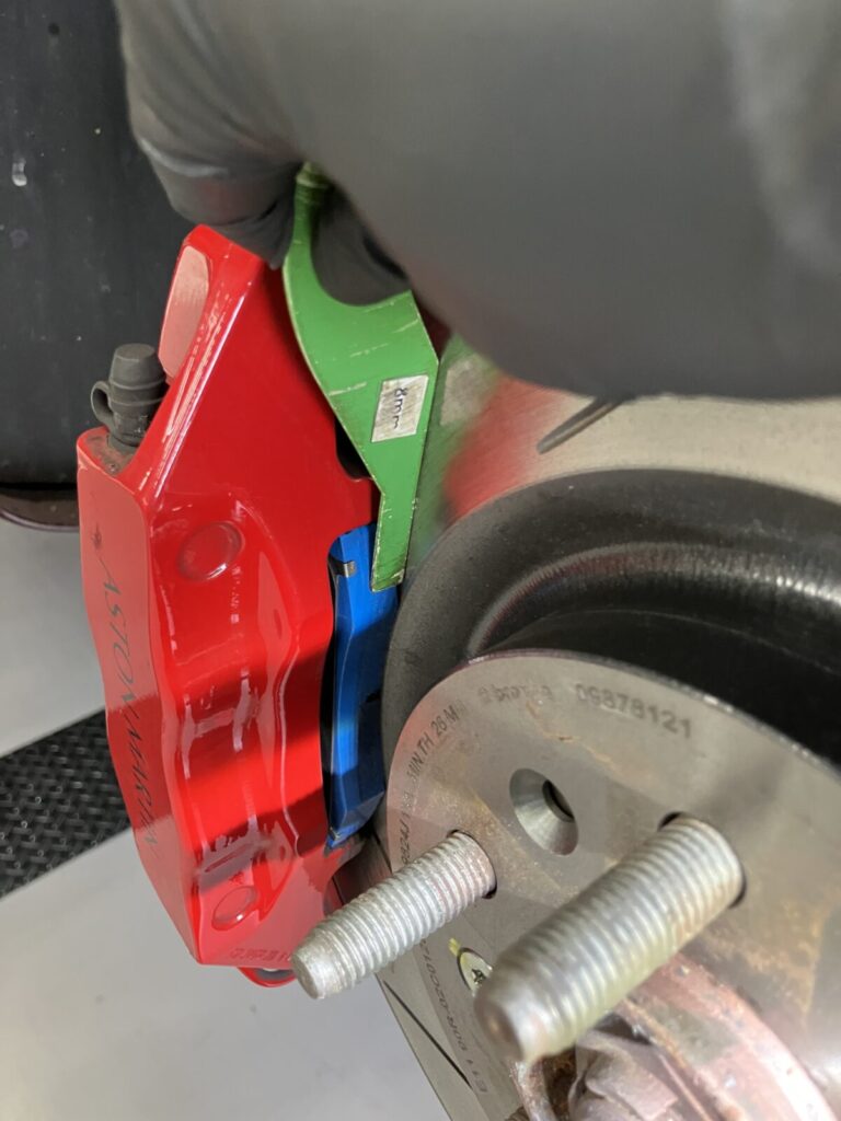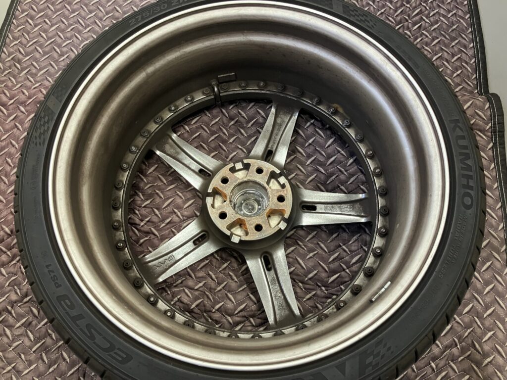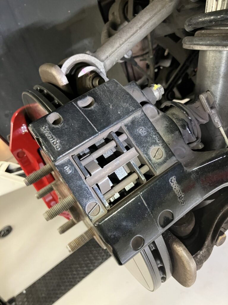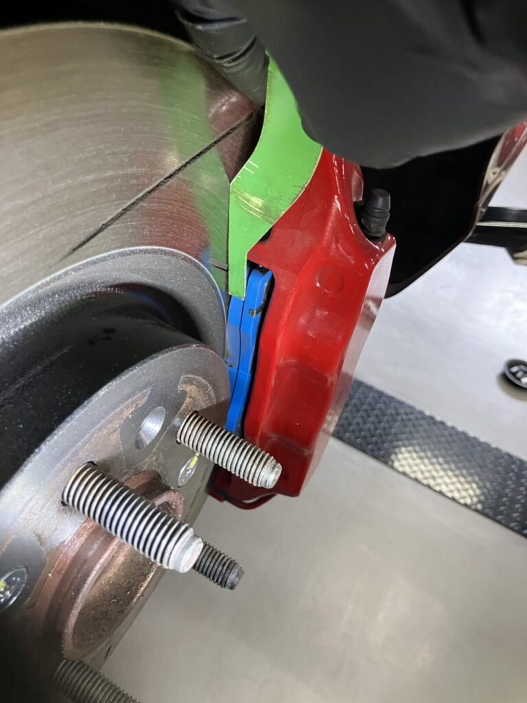 タイヤを外し、ブレーキパッド残量点検と足回りの点検を実施します。