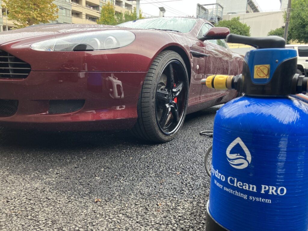 車検、点検を受けていただいた車両はサービスにて洗車を実施しておりますが、弊社では純水器にて水道水をろ過して洗車に使用しております。