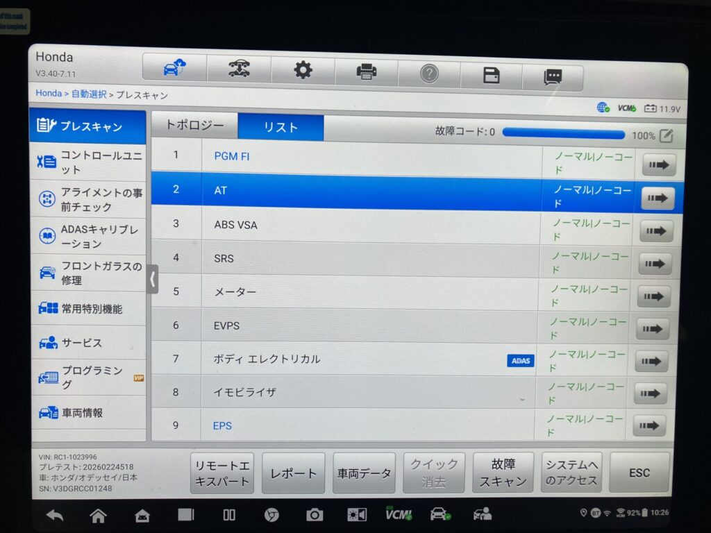 ミッション関係・エンジン関係共に故障コードの入力はありませんでした。