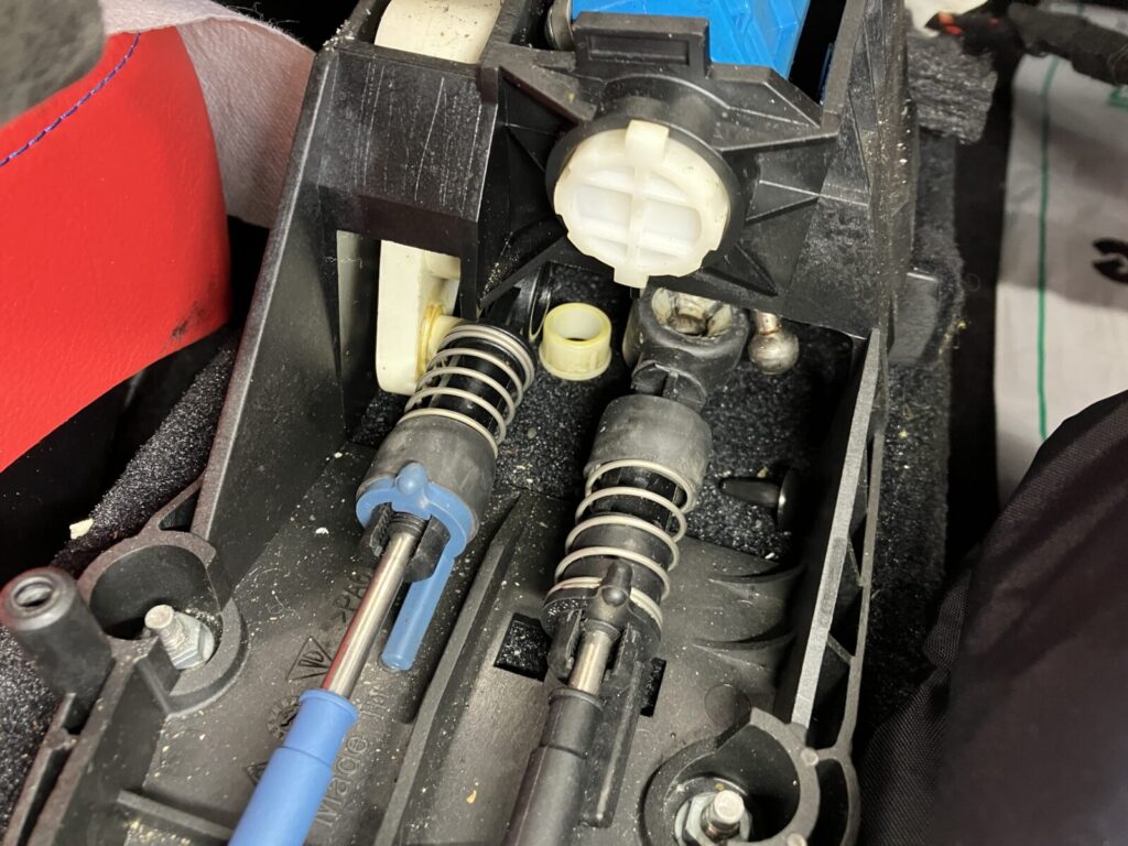 取付作業をし、シフトの入り具合等を問題がないことを確認し、車内の復元をしていきます。