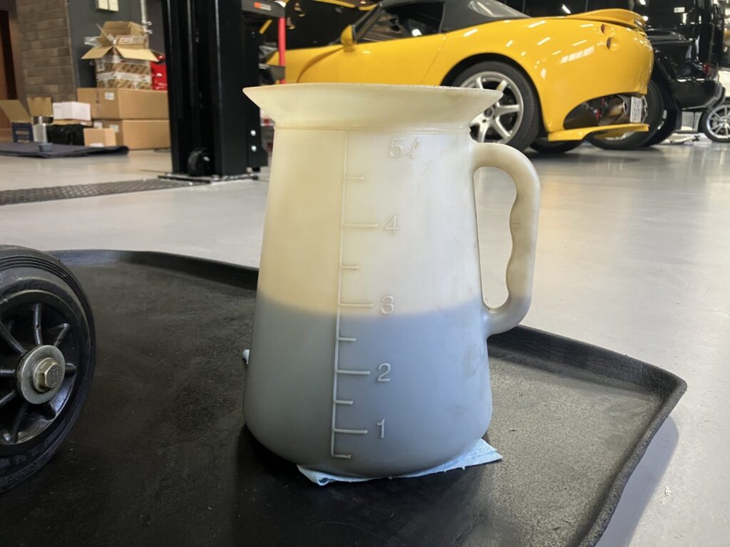オイル量を念のため計測しておき、入れる量の目安にしておきます。